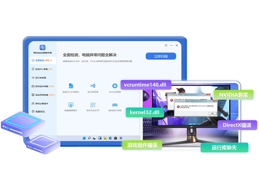 一键修复电脑因系统文件、DLL、DirectX导致的 崩溃、卡顿、故障 等问题